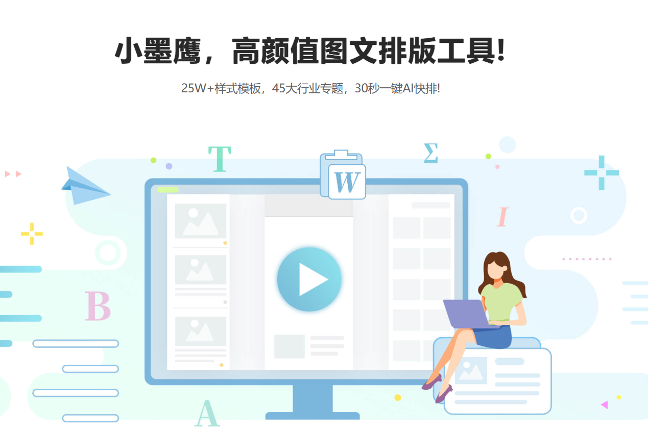 排版工具:推荐使用小墨鹰编辑器,这个公众号排版工具25万+素材模板,正版可商用,且支持AI全自动排版,导入文档一键 完成排版,高效又美观。