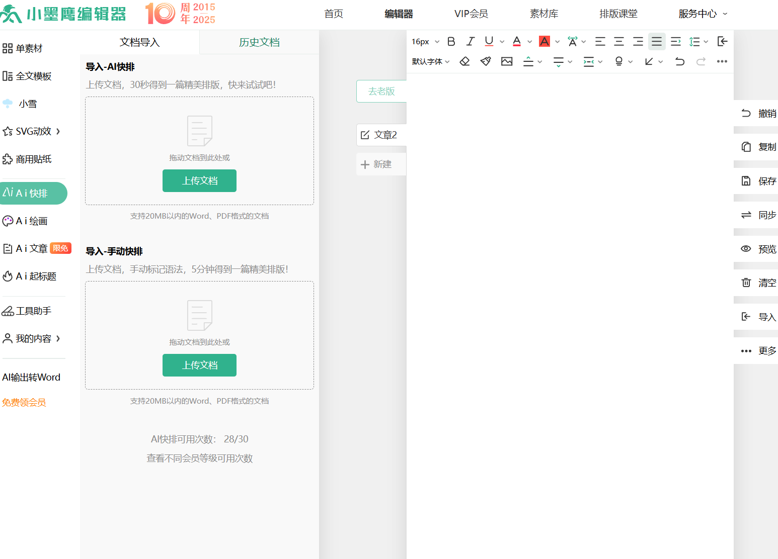 第一次用小墨鹰时,我把一篇杂乱无章的Word文档拖进去,点击"AI快排",不到一分钟就变成了一个专业排版的文章。那种"这也太神奇了吧"的感觉至今难忘。