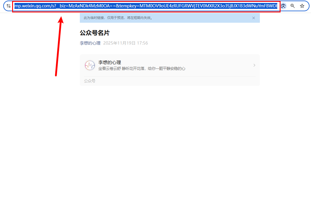 随后输入含公众号名片的微信文章链接后提取并应用;