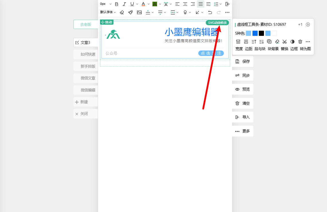 再次回到小墨鹰编辑器,先点击素材,再点击素材右上角的“SVG动效修改”;
