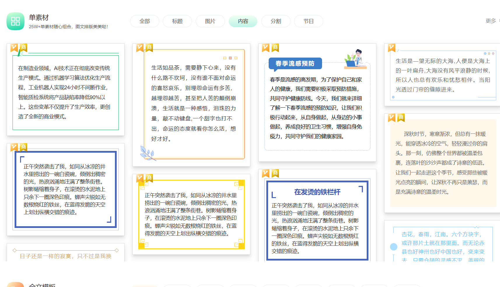 它能像人一样“读”文章:识别医疗科普文的专业感自动配蓝色医疗风模板,抓住亲子文案的活泼感切到卡通版式。实测连冷门行业(比如宠物殡葬)都能匹配到素雅黑金模板。