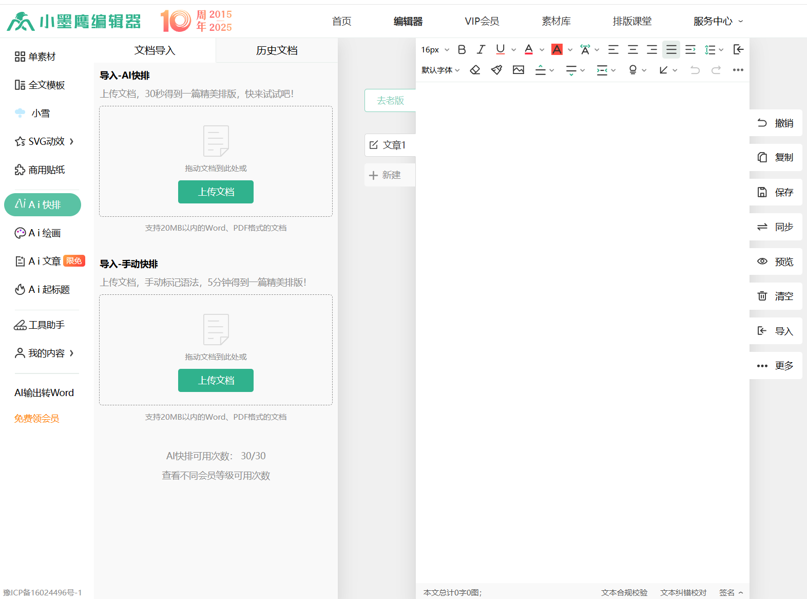 如果你之前是“速排小蚂蚁”的用户,那么现在的“小墨鹰编辑器”就是你一直在用的那个工具,只是它变得更强大、更智能了。对于新用户来说,直接搜索和使用“小墨鹰编辑器”即可,它就是这款产品当前唯一且最新的版本。
