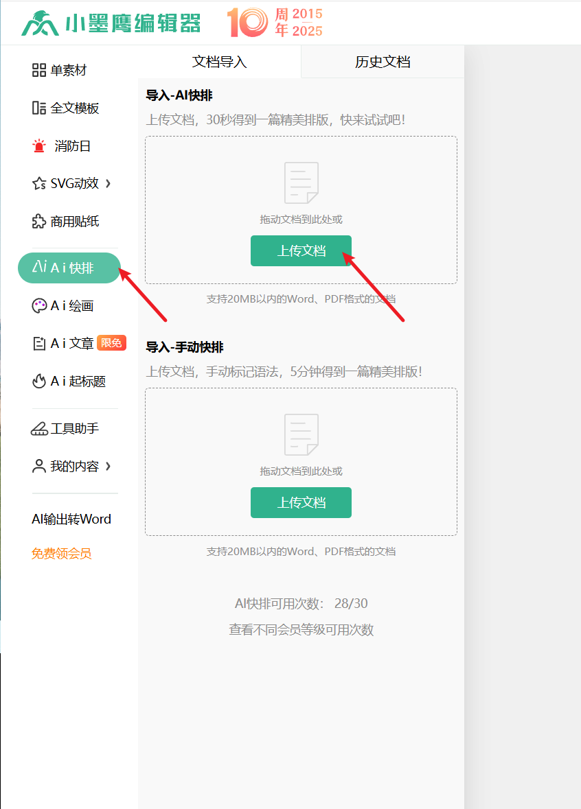 上周帮教育机构做节日推文,从Word文档到最终排版完成只用了28秒,甲方爸爸连发三个大拇指表情。用的就是【小墨鹰编辑器】的AI快排功能,导入文档后自动拆解出标题层级、配图文案关系,连二维码位置都安排得明明白白。