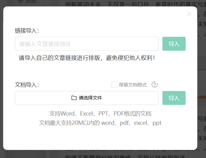 这里只需要借助一个工具就可以搞定,用小墨鹰编辑器的导入功能,将文章内容加排版一次性导入到编辑区,这样就可以排版编辑了,导入后样式内容不变。