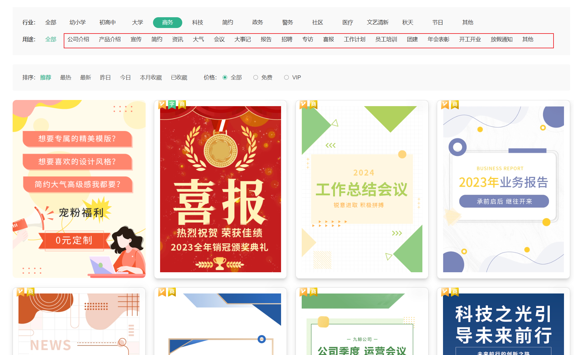 10000+行业模板:覆盖45大行业,从商务金融到医疗教育应有尽有