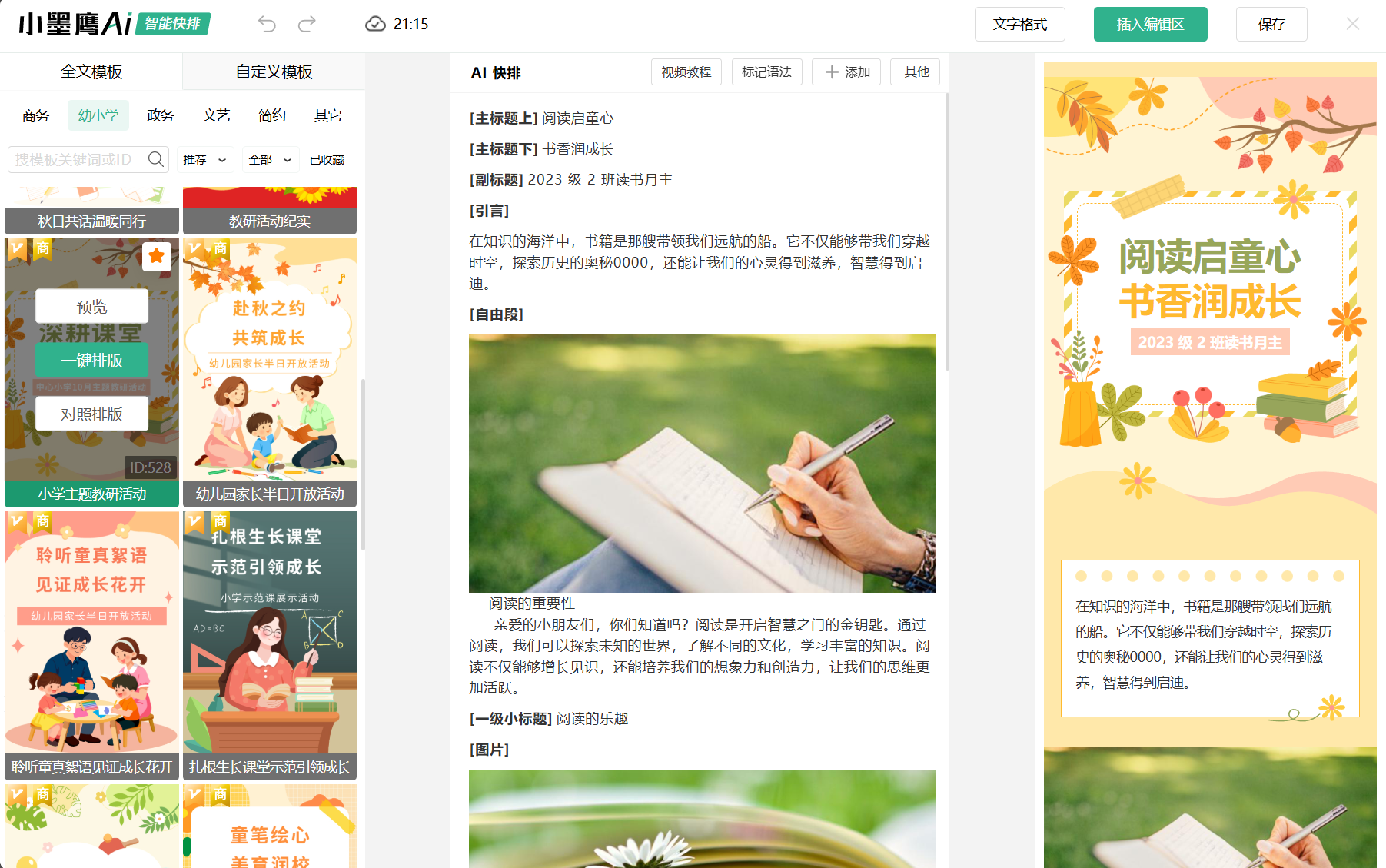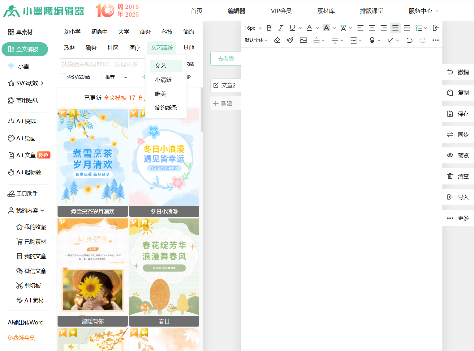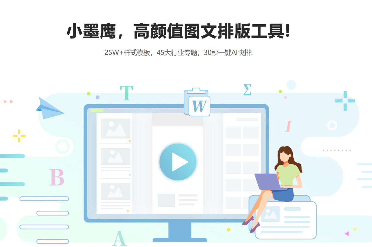 小墨鹰编辑器:AI功能最强,支持一键排版,模板丰富二十多万排版素材,功能强大,新手友好。