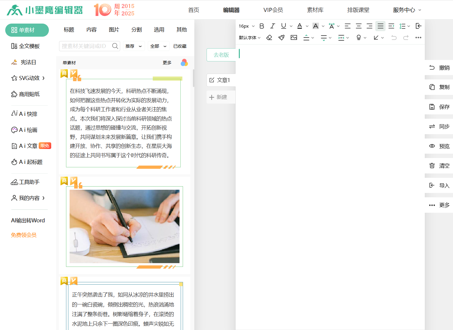 日常排版:小墨鹰(AI快排+海量素材)+ Prompt Editor(处理AI文案)