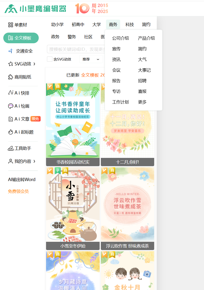 小墨鹰:素材丰富,AI功能强大