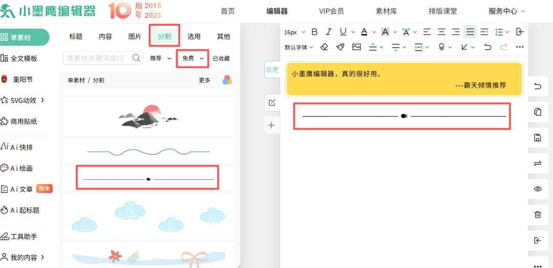 新手建议可以先用免费的样式,基本都够用。(不像某些微信排版编辑器,打着免费的名义,实际只有两三个能免费用)