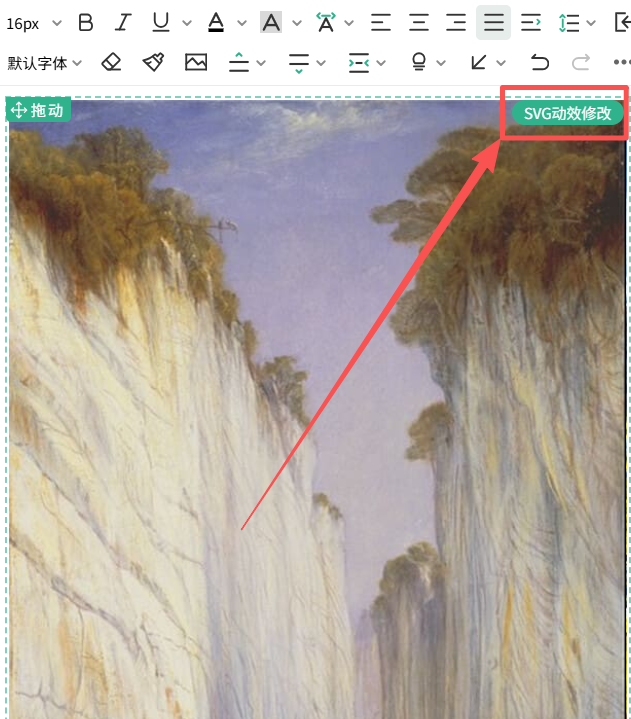 写入编辑区后,点击图片,右上角会出现一个按钮【SVG动效修改】点击按钮,在弹窗中把自己的图片换掉就行了