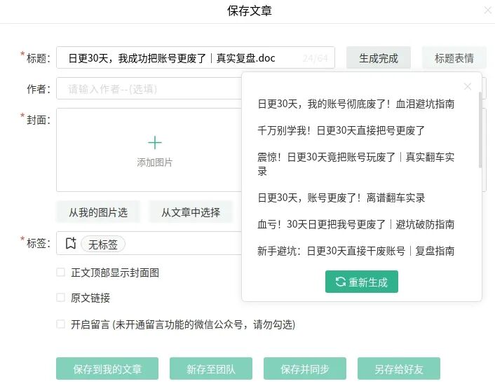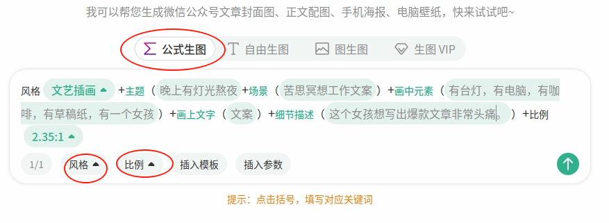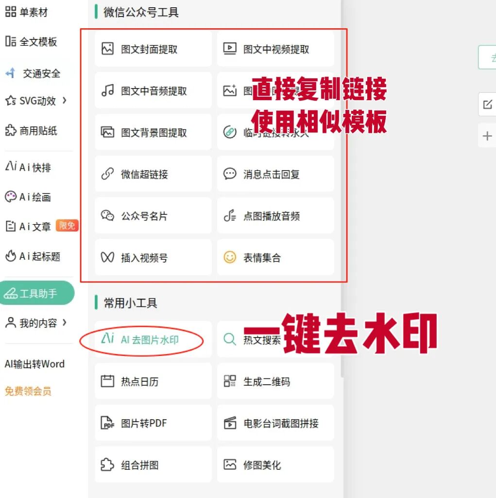 内置AI绘画工具,通过简单的文字描述(如“如何创作爆款文案配图”)即可一键生成独一无二的公众号封面与文章配图。