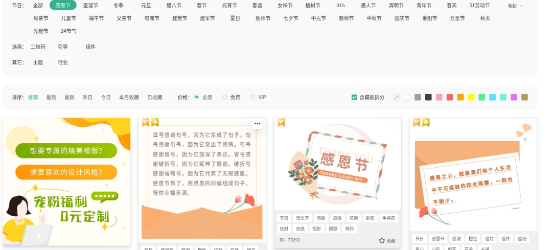 2)节日热点模板“感恩节”来临前,可以试试这个模板,有些免费功能,我刚试了一下真的好用。