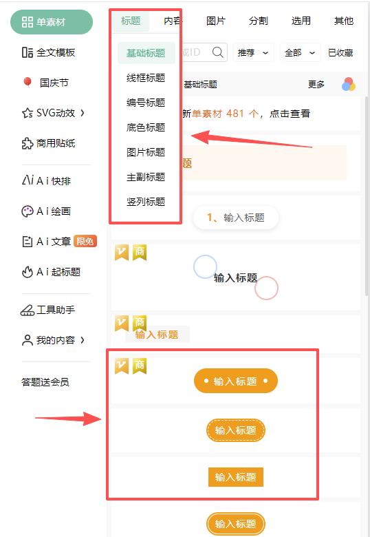 内容编辑的几个关键点1、标题模板:可以挑选编号标题、竖列标题等;