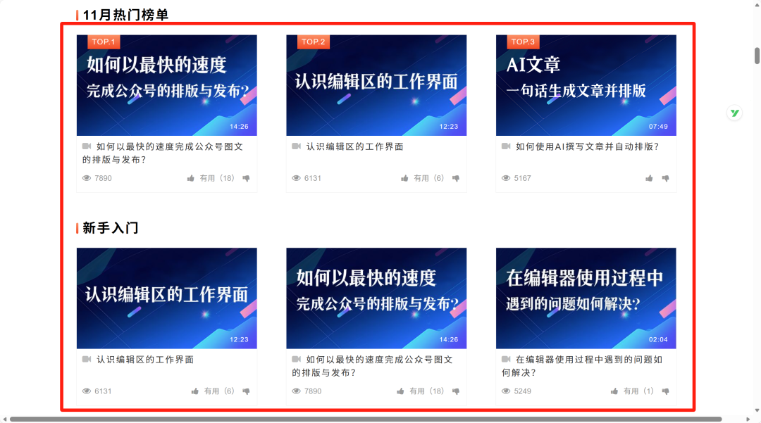 更更更更加让我心动的是!小墨鹰编辑器竟然配备了编辑器使用方法视频,点击上方工具栏的“排版课堂”,会有很多教你如何进行排版的技能视频,对于新手或者想要追求高阶排版样式的人特别友好,哪里不会,就可以点击视频进行学习。