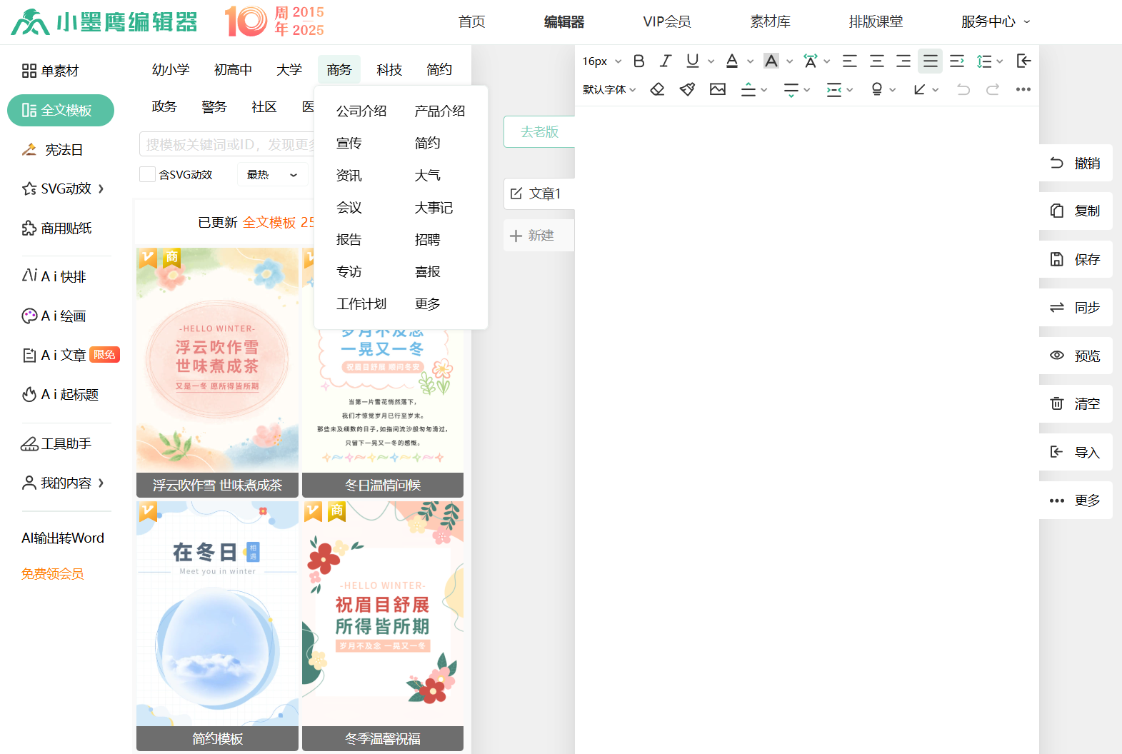 新手建议从小墨鹰开始,等熟悉排版逻辑了再尝试其他工具。记住几个小技巧: