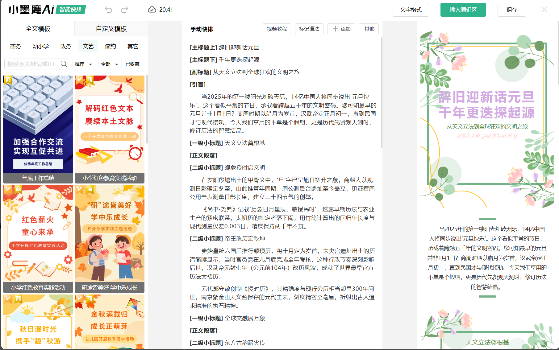 这排版工具让我爱不释手,用到现在快8年了,偶尔还是会被惊艳到!尤其是它的AI快排功能,导入文档30秒自动排版完成,真的省心。印象最深的是有次临时要发一篇活动推文,直接把Word文档拖进去,真的就点了两下鼠标,没一会儿就排好了——连图片位置都处理得特别到位,根本不用自己调。几个特别实用的点:
