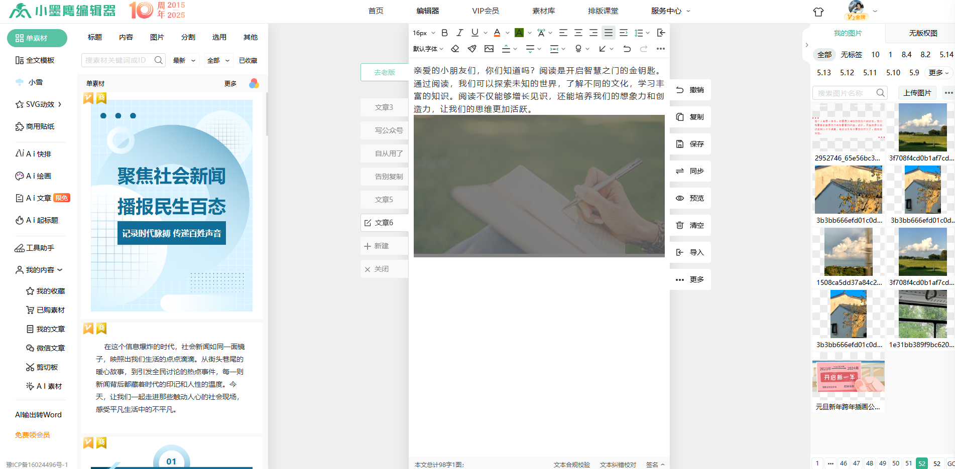 若追求排版与写作的全流程效率提升,小墨鹰编辑器是当下的佼佼者。它的核心优势在于深度AI赋能。
