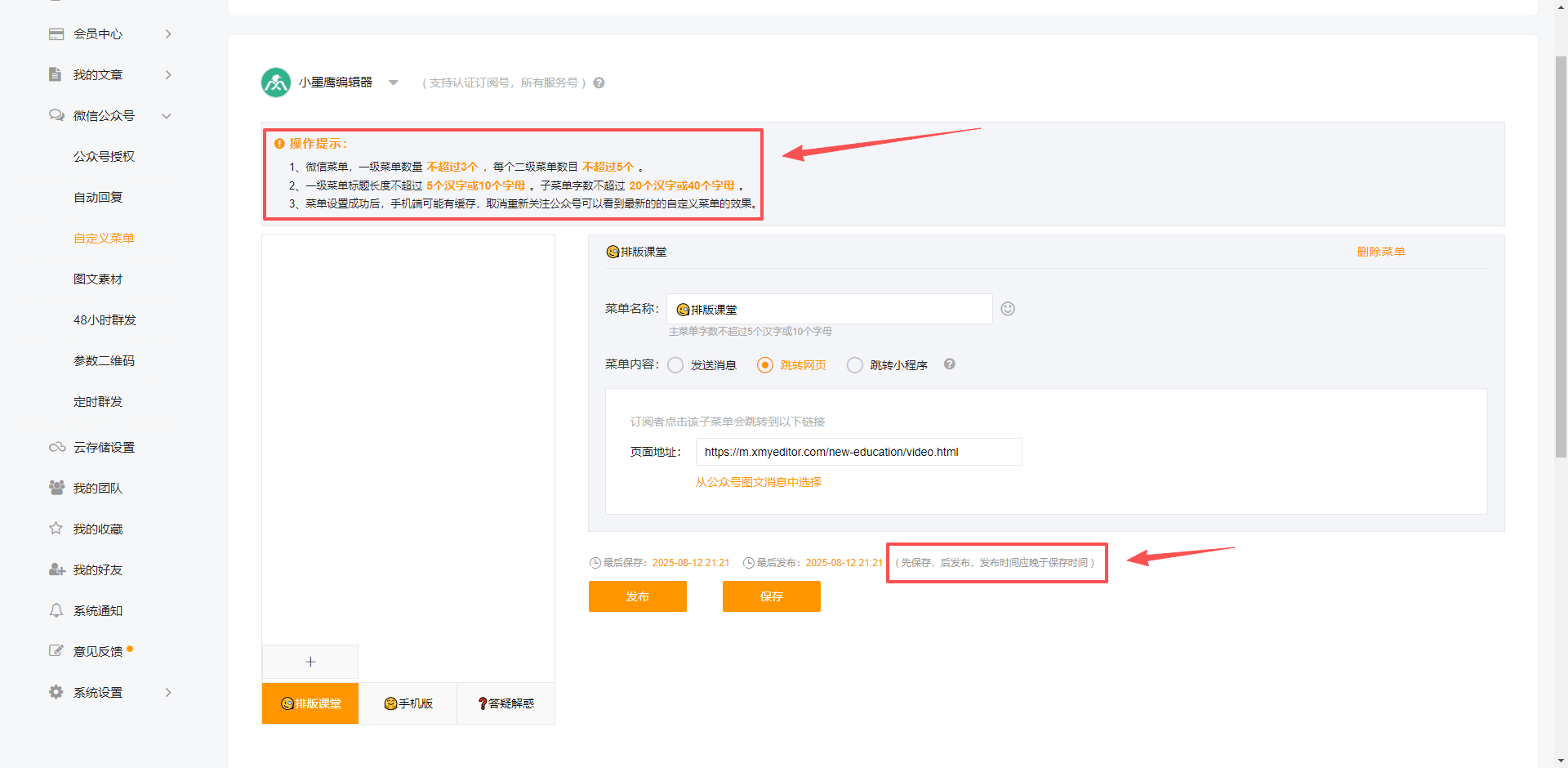 上周我兴冲冲地登录公众号后台,找到自定义菜单设置,准备给我的菜单加上表一个做公众号的朋友告诉我:“你可以用小墨鹰编辑器啊,那里可以随便加表情!”我将信将疑地打开小墨鹰编辑器,在左侧功能栏里找到了“自定义菜单”这个选项。
