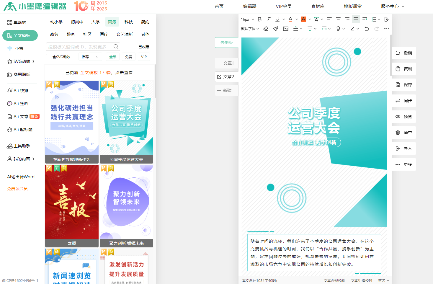 输入行业+风格(如"医疗+水墨风")能触发跨界模板