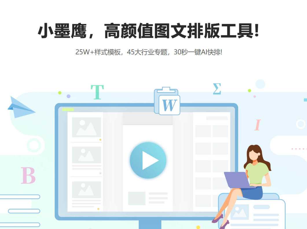 “小墨鹰编辑器凭借丰富素材与AI辅助工具,一站式为你解决排版难题,帮助省出3倍效率!”