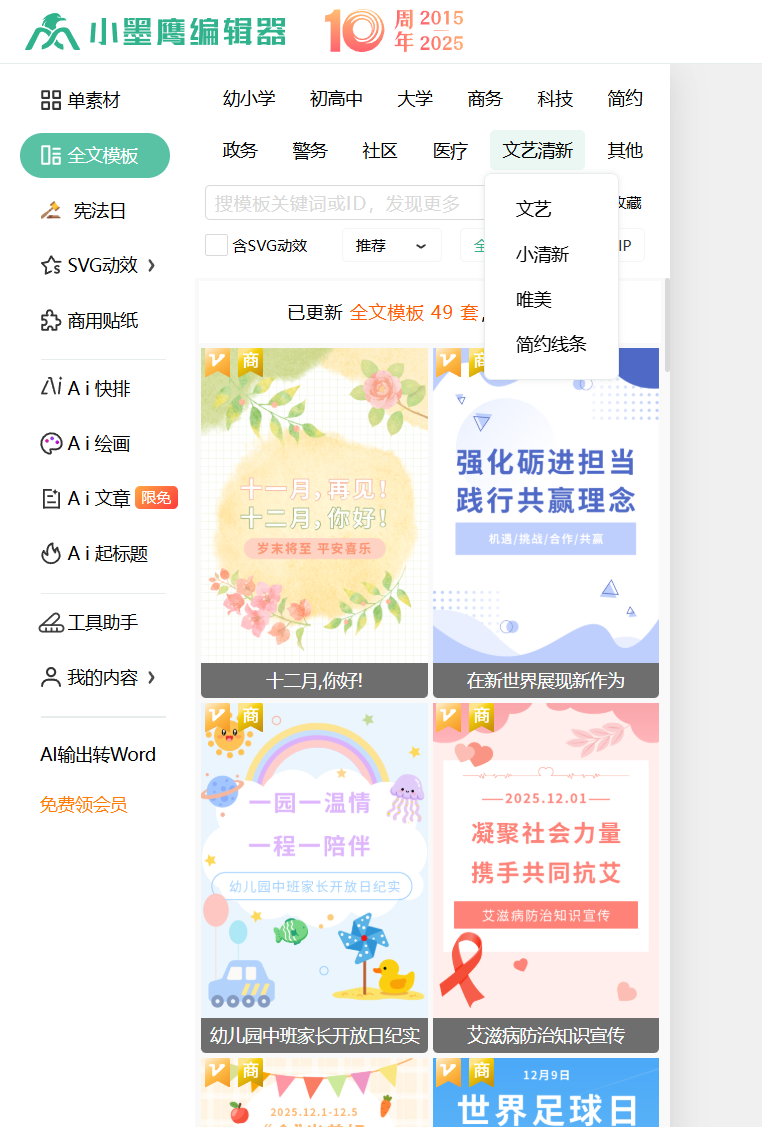 25万+素材、10000+全文模板、3000+SVG动效,覆盖45大行业。