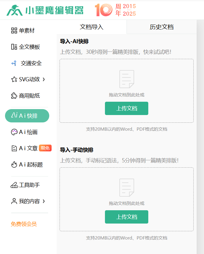 当你需要快速完成一篇高标准的推文时,轻松导入文档,模板一键套用、素材随心调整,再复杂的内容也能30秒内完成精美排版,效率翻倍。