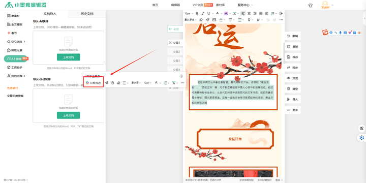 比如,小墨鹰编辑器的AI快排功能,一键就能让你的文章焕然一新,再也不用为排版问题头疼,从而把更多精力放在内容创作上。