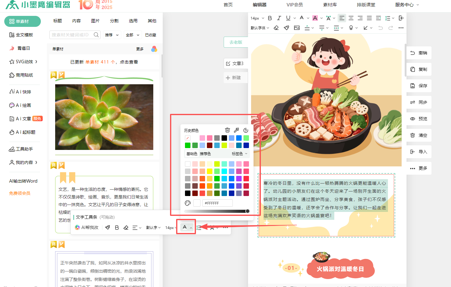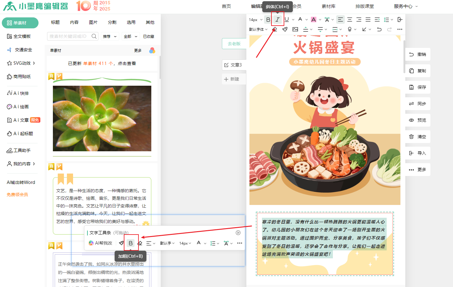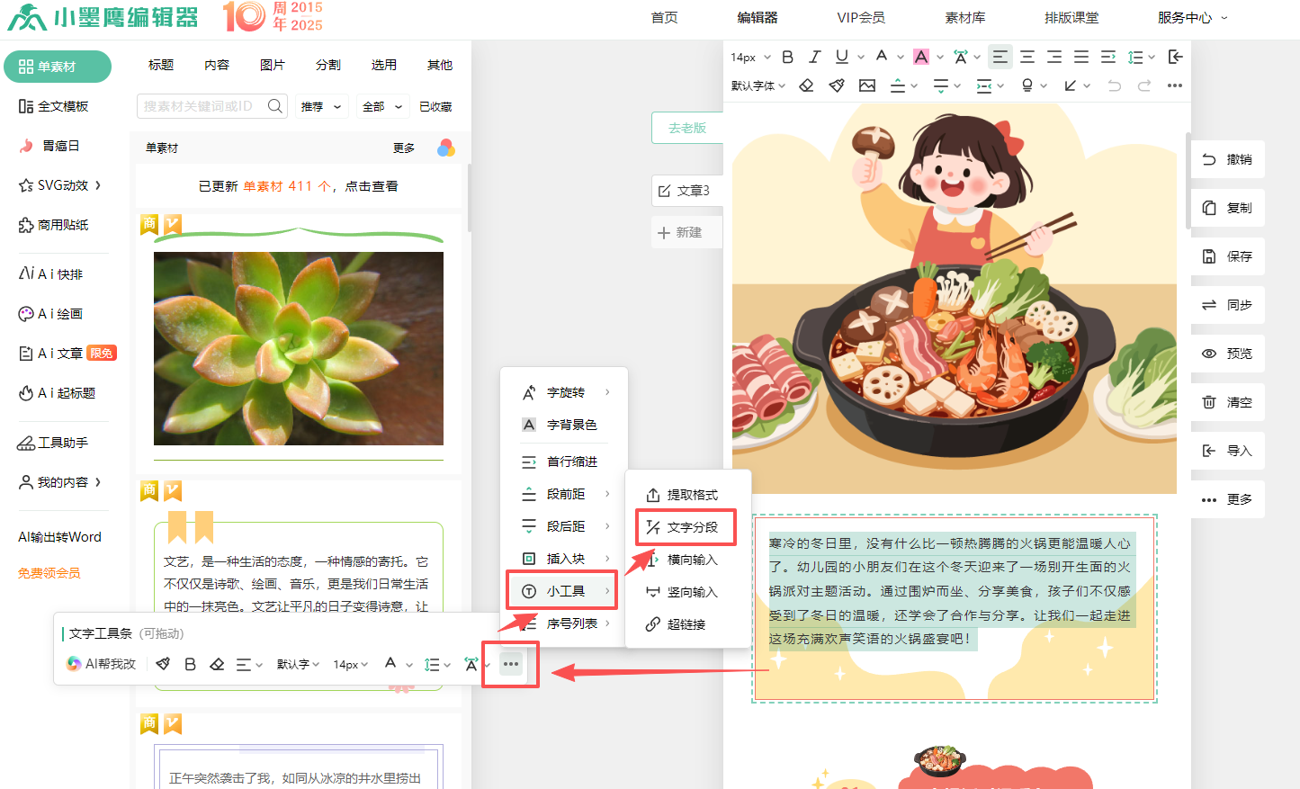 怎么样?这些妙招是不是既实用又有趣?这些功能小墨鹰编辑器的文字工具条统统能搞定。快去试试吧,让你的公众号文章瞬间焕发出新的生命力!记住,排版也是一门艺术,用心去做,你的文章一定会越来越精彩!