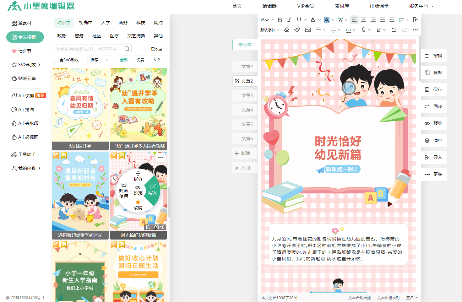 1、打开小墨鹰编辑器,目光锁定 左侧的【全文模板】,点它!