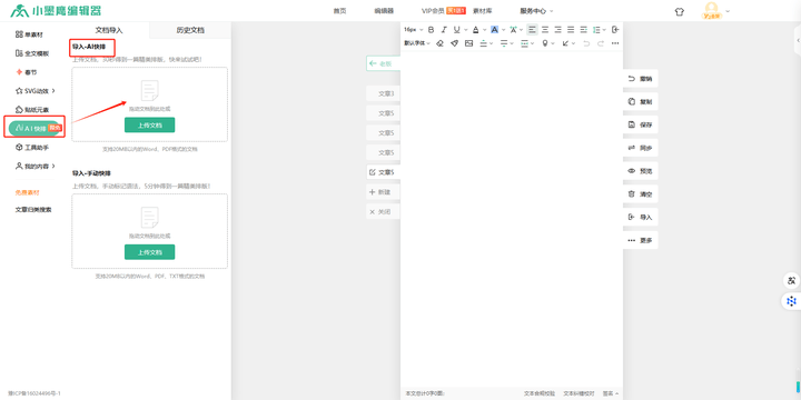 1、准备一篇Word文档,打开小墨鹰编辑器“AI快排”