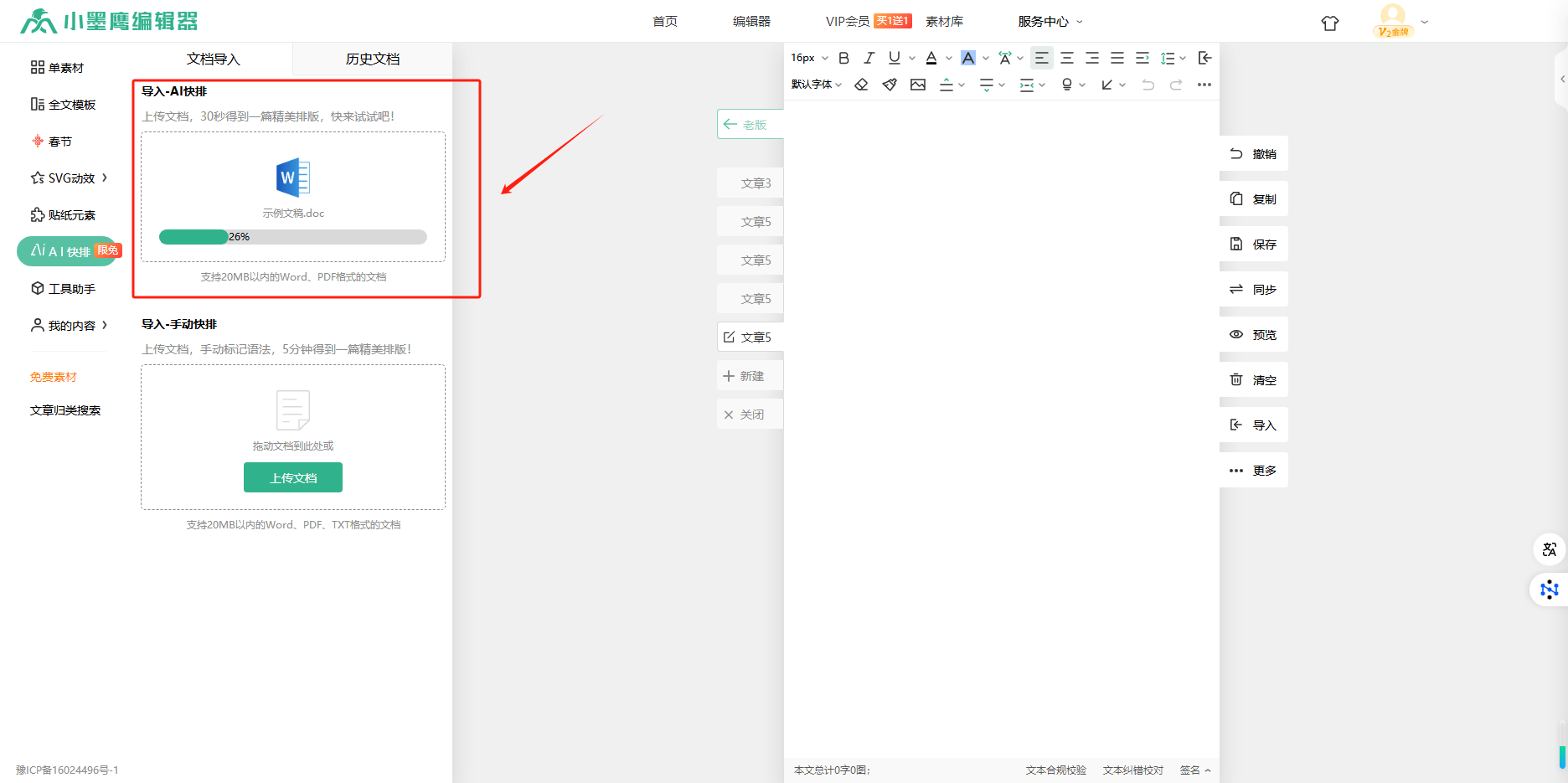 我最近就在学习使用小墨鹰编辑器,它的【AI快排】功能,我真心觉得不错