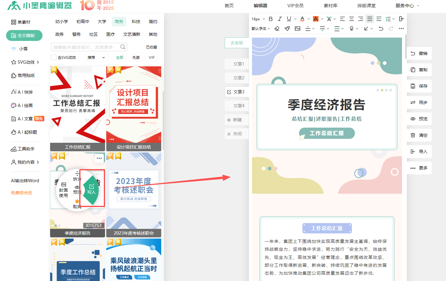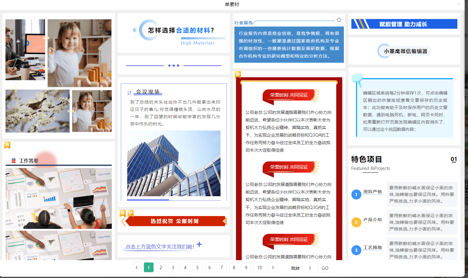 记得刚接手公司公众号排版那会儿,有次经理急着要发一篇商务合作推文,我翻遍了小墨鹰编辑器单素材都没有成套的模板,只有商务风的标题、图片、内容素材。眼看交稿时间就要到了,急得我差点想把普通模板强行改成商务风格。