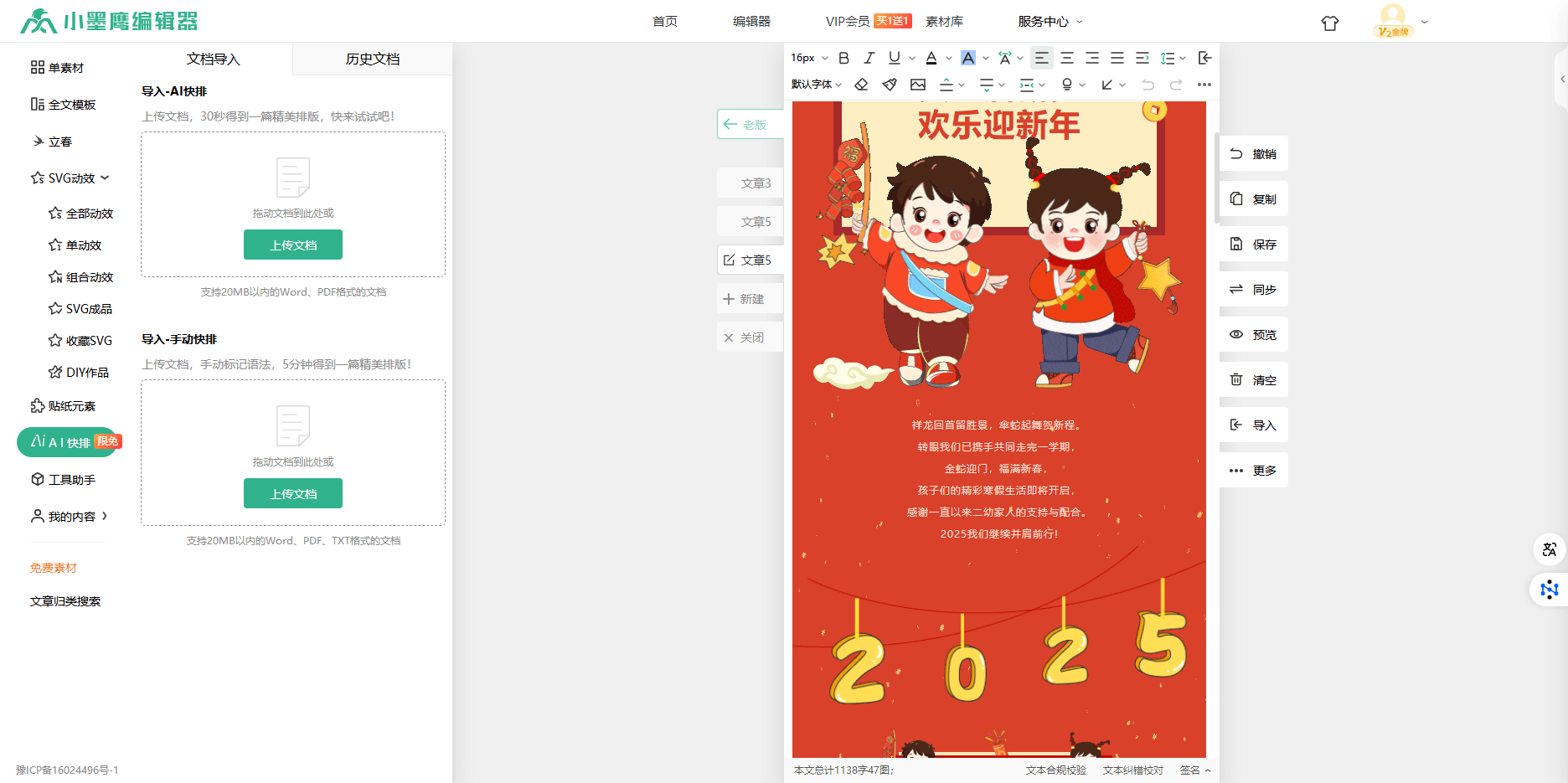 用户只需简单地将文档上传导入到编辑器里,就能迅速得到一个优化后的排版效果,无需再花费大量时间去手动调整每一个细节。