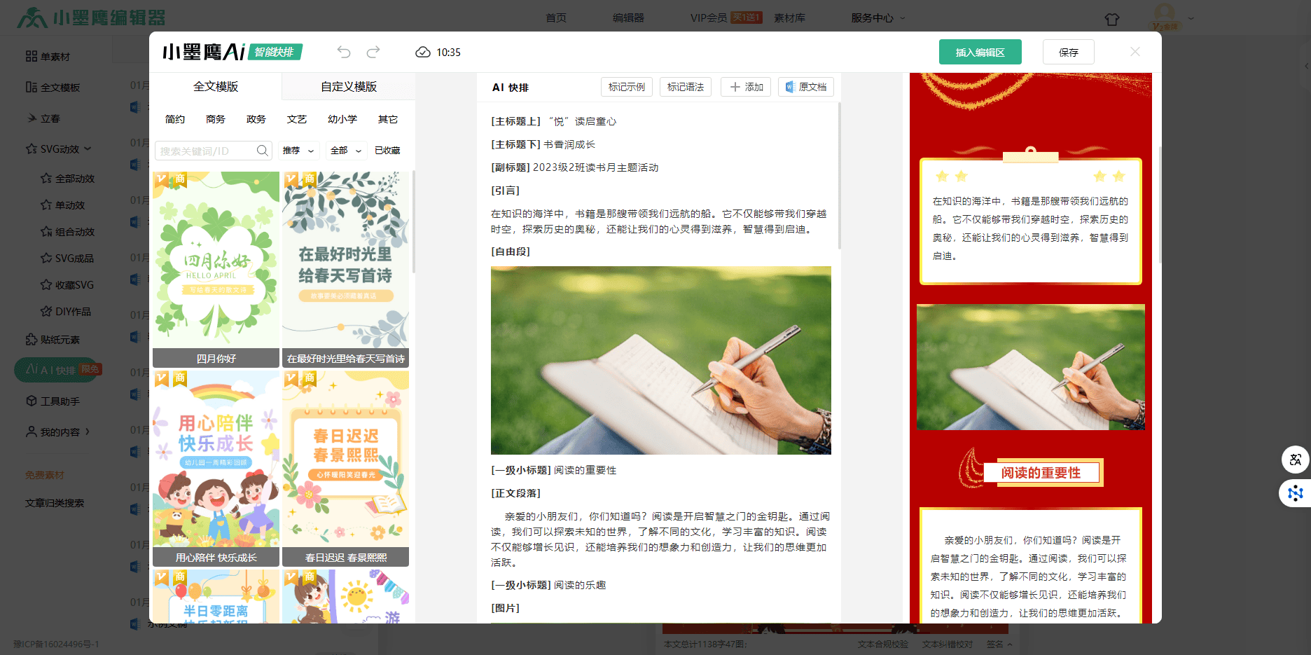 小墨鹰编辑器内置了多种精美模板,其中不乏关于AI领域的最新资讯和技术进展。