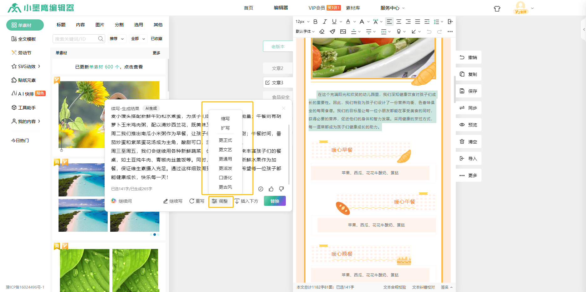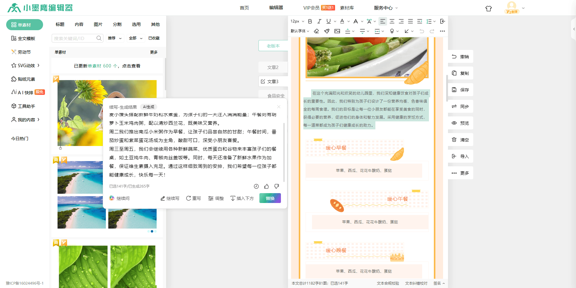 当大脑和文档同样空白时,只需把"幼儿健康食谱""几个字丢给AI,就能收获一份大纲。就像往自动贩卖机投币,三分钟后叮的一声,热乎的初稿已经冒着香气出炉。