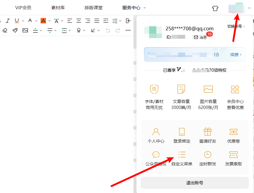 别愁,用小墨鹰编辑器就能轻松突破这个限制~!先打开小墨鹰编辑器,点击右上角的头像,在弹出的选项里找到 “自定义菜单”,点进去就能进入编辑界面。(需要授权绑定微信公众号才能进行设置)