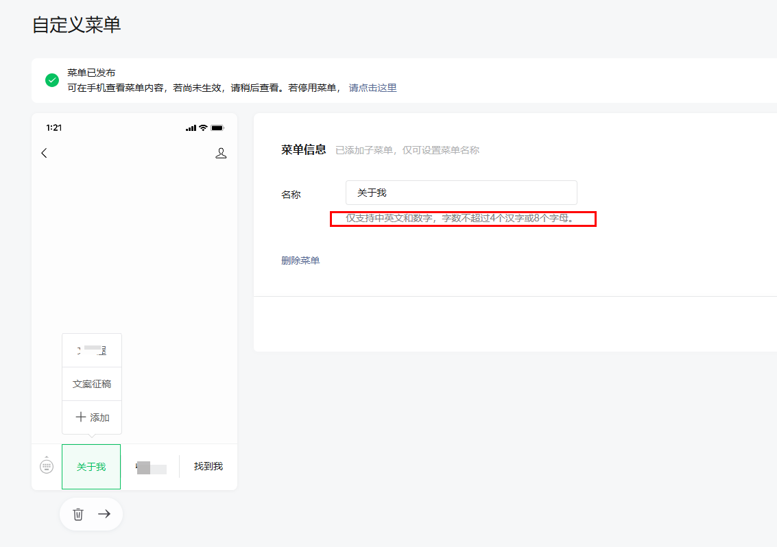 有没有发现公众号后台设置主菜单栏时文字只能设