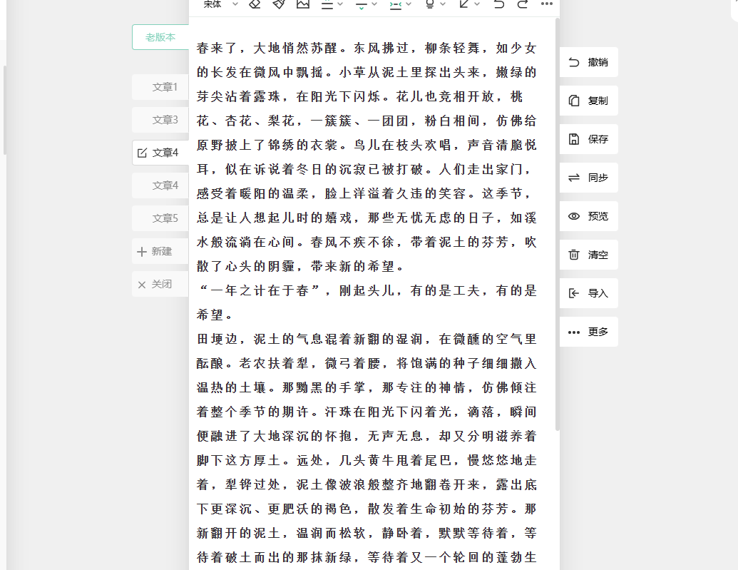 然后去小墨鹰编辑器顶部工具栏,或者选中文字后弹出来的工具条里,按自己需求调字体、字号、颜色、行距等。