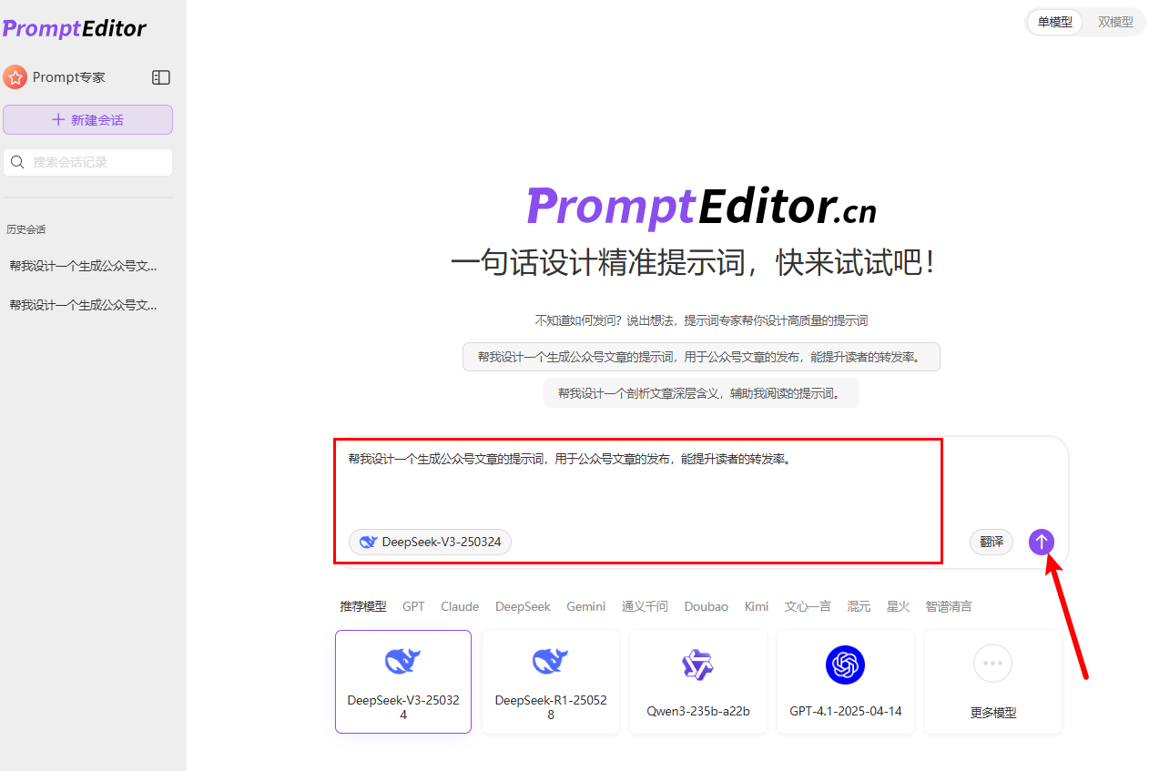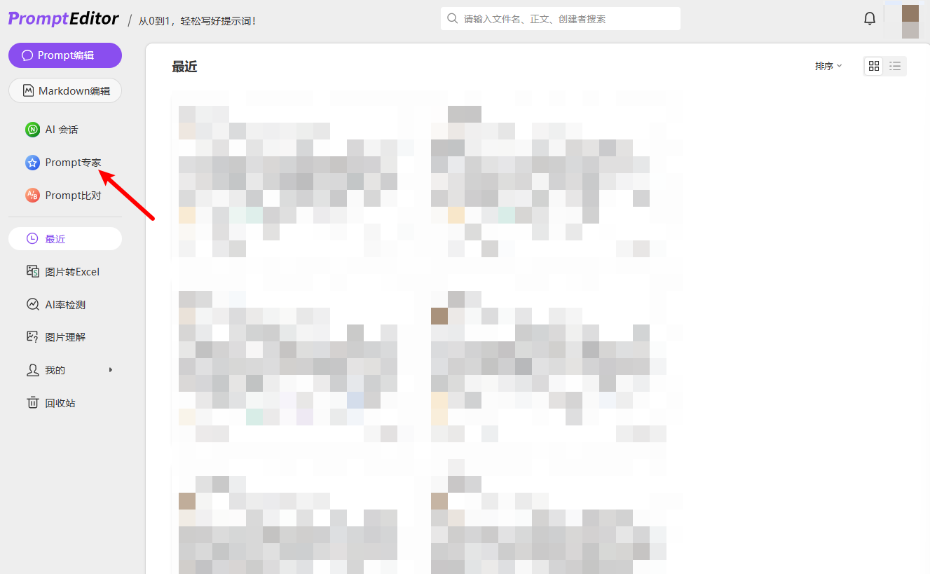 1、打开 Prompt Editor 编辑器后,直接找到 “Prompt 专家” 功能点击进入。