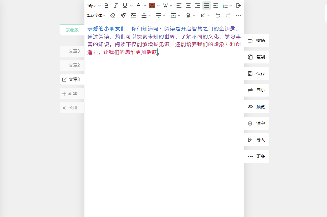 这段渐变色文字就直接进排版里,就可以在编辑区使用了,点一下这段文字,还会弹出渐变色板,想再微调颜色也超方便。