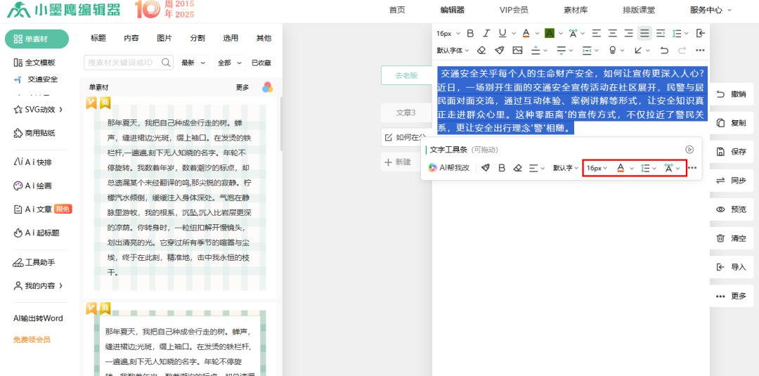 好啦!今天的基础排版知识点就分享到这儿~ 新手小白刚开始做推文,除了用公众号自带的原生编辑器,也可以试试小墨鹰编辑器这类工具,里面有超多现成的公众号模板,每天都会更新,免费模板都够我们日常排版用了,界面操作也简单,更方便大家做排版呢!