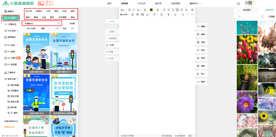 它里面素材库特别丰富,而且模板的单个素材都分好了类,各种风格模板、动图、表情包随便挑。想做个节日专题?直接搜关键词,整套排版素材就出来了,省得你到处找图。