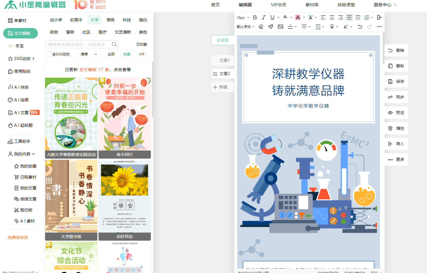编辑器首页就有无数用户分享的模板,都是免费的。你可以搜索“新手”、“简约”、“职场”、“读书”等关键词,找到喜欢的直接套用,然后微调成自己的颜色和文字就行。这比自己从零开始设计一个版式快太多了。