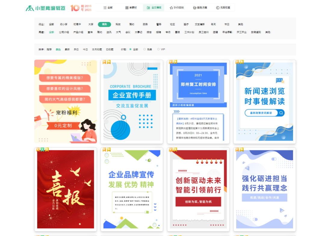这是节省时间最关键的一步。打开模板中心,直接在分类中筛选带有 “商务”、“简约”、“大气” 等标签的模板。