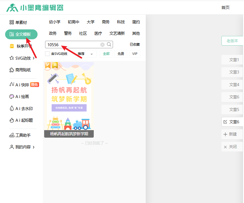 1、点左边的「全文模板」,在搜索框里直接输入刚才看到的模板 ID(比如 10556);