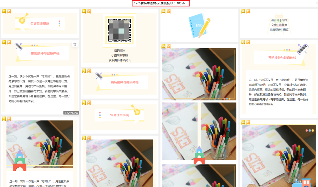 还能看到这些素材都来自同一个模板(比如模板 10556),整套用下来排版超协调。