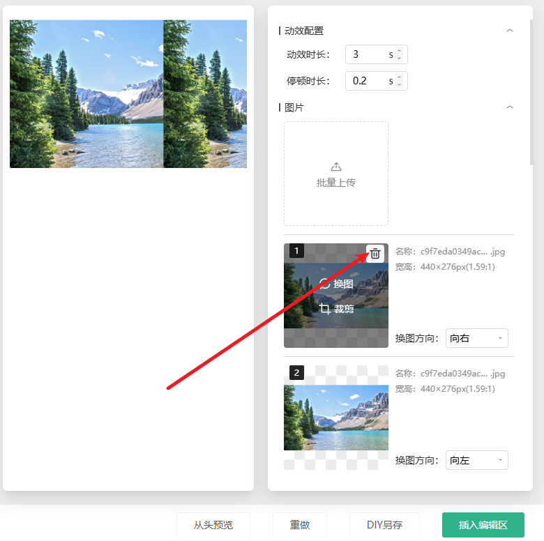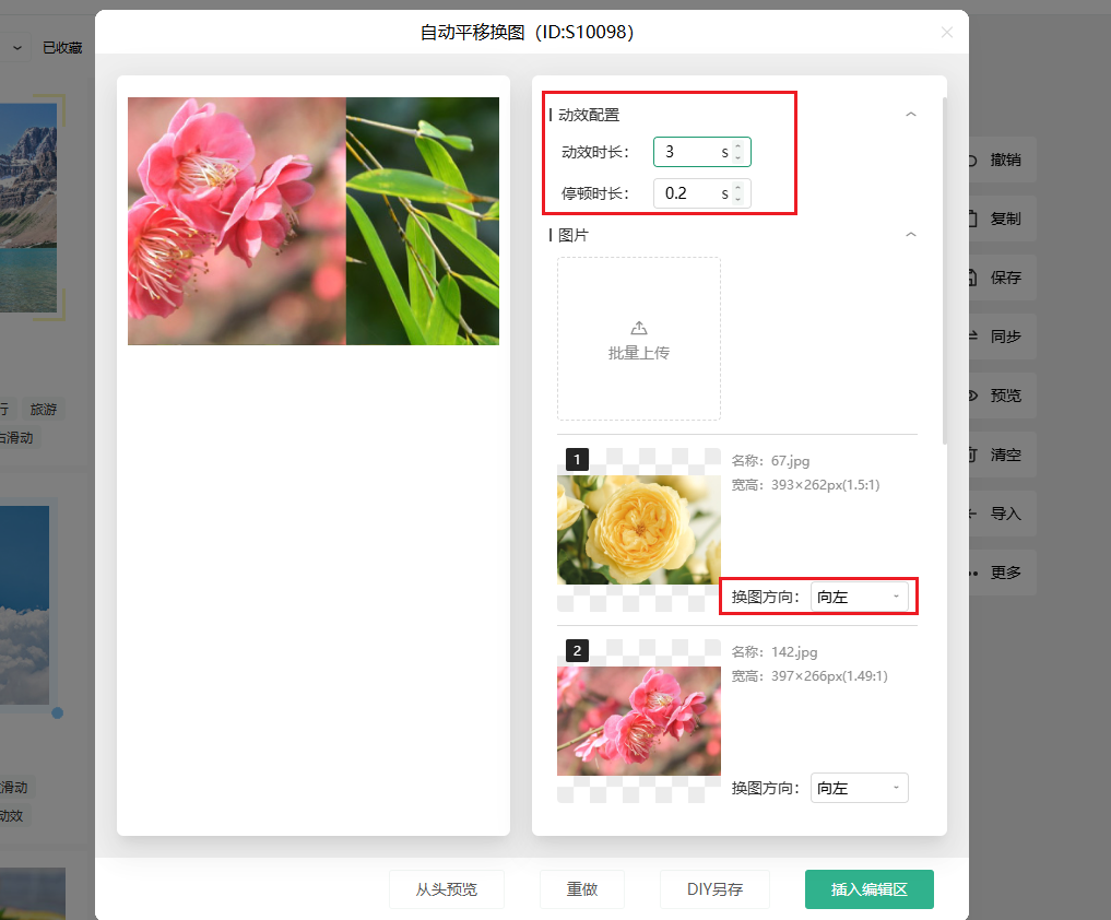 7、设置完在左边能实时看预览效果,觉得没问题就点「插入编辑区」;