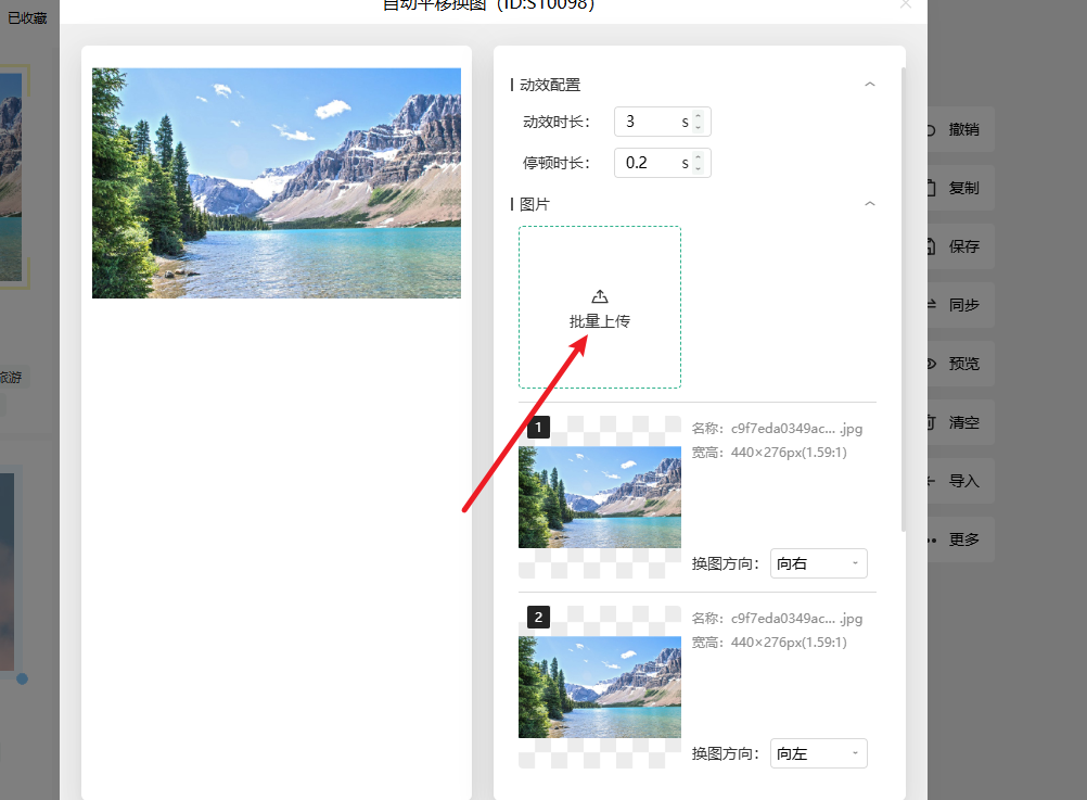 4、然后点「批量上传」,把准备好的图片都传上去,不用一张一张慢慢加;