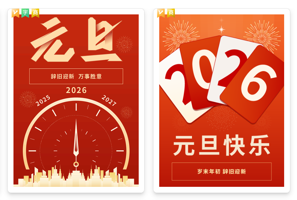 品牌视觉元旦风:主打简约车轮、大标题风格,适合中大型企业宣传。