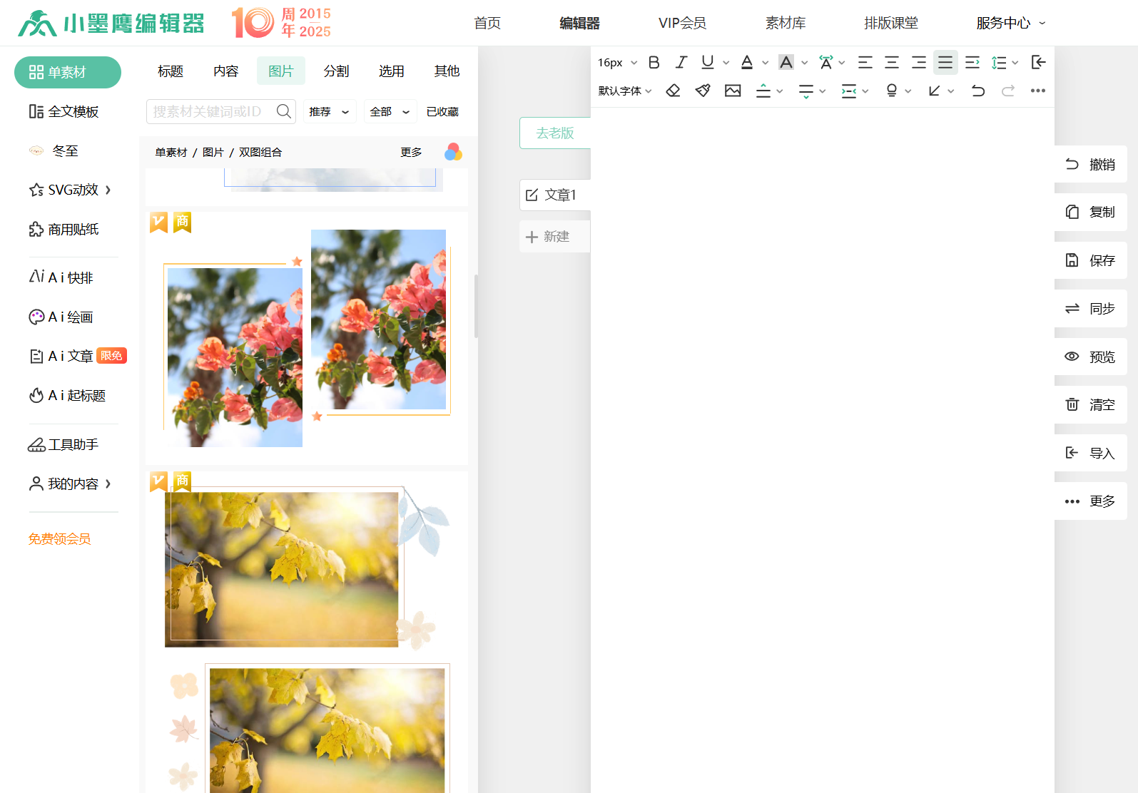不足:排版功能相对单一,素材库有限